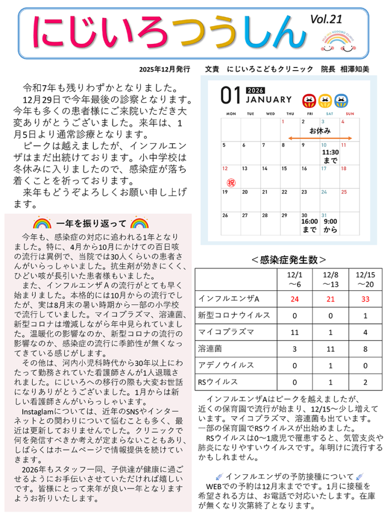 「にじいろつうしん Vol.21」を発行しました。 画像クリックで御覧いただけます。